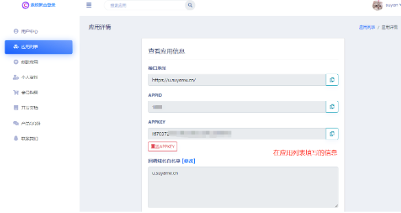回调域名白名单:填写自己域名。如:suyanw.cn