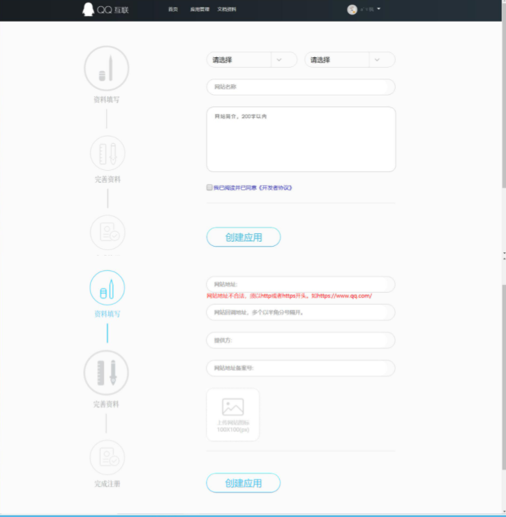 网站地址填你要用QQ登录的网址,回调地址填到你要登录的页面的目录下,再加/qqlogin.php 例如我要用www.XXXX.com进行QQ登录,登录页面在路径www.XXXX.com/user/login.php 那这个回调地址就填www.XXXX.com/user/qqlogin.php 提供方可以随意,然后再把备案号填完就行,最后上传下图标即可,然后等待审核(一天左右吧)
