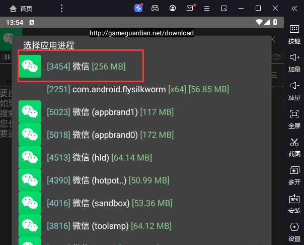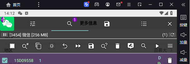 2. 打开GG和微信,在**微信-更多信息**这里点GG图标附加微信主进程,内存占用最大的那个就是